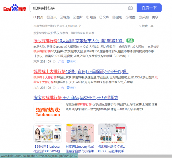 搜索“尿不湿”“纸尿裤”“纸尿裤排行榜”的用户。可以断定90%以上是婴儿的父母,这就意味着这三个词每年影响135万个妈妈的购买行为。30个同等指数的词,没你那影响1350万个妈妈的购买行为。当妈妈在搜索引擎输入“纸尿裤排行榜”时,排名第一名的是一篇标题为“2014纸尿裤排行榜前十强介绍”的软文。