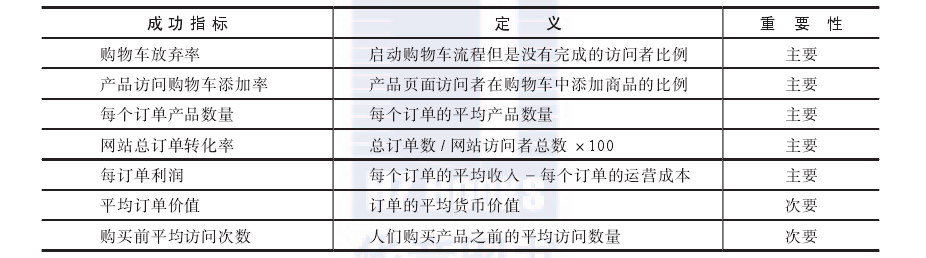 1.电子商务网站成功衡量指标